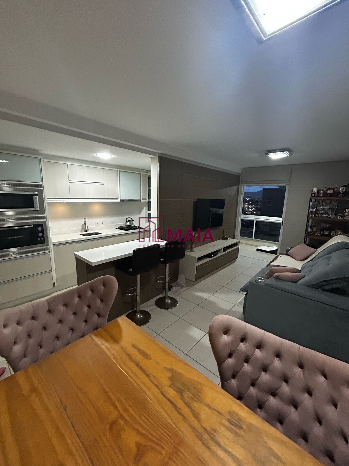 Lindo apartamento de 2 suítes, semi mobiliado, cozinha integrada, sacada com churrasqueira e fechamento em reiki, lavabo, ar condicionado em todos os cômodos.
